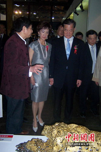 中新網杭州5月2日電(記者 汪恩民)5月2日,“朱炳仁、楊奉琛兩岸兩人藝術展”在杭州西湖博覽會博物館開幕,中國國民黨榮譽主席連戰出席了開幕儀式并親筆題詞道賀。
