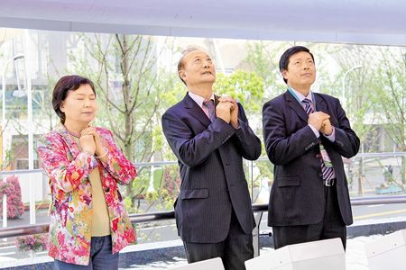 報道說,厲無畏等人在臺灣館天燈水臺下許下“國泰民安”心愿,當天燈緩緩升起,厲無畏、夫人鄭秀珠女士不時抬頭仰望,鄭秀珠女士更闔上雙眼虔誠地合十祈福。