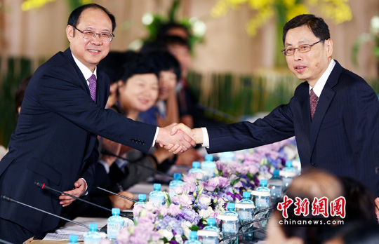 中新網(wǎng)臺北6月24日電 為籌備海協(xié)會與海基會第五次會談,海協(xié)會常務(wù)副會長鄭立中與海基會副董事長兼秘書長高孔廉24日上午9點在臺北圓山大飯店舉行預備性磋商。