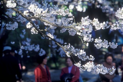 久聞阿里山是全臺灣櫻花最美的地方,光是從日本傳來的染井吉野櫻就多達1900多株,像是阿里山派出所、阿里山賓館、沼平車站及沿線、貴賓館、木蘭園、林務局招待館、三代木等處,都可以欣賞染井吉野櫻花海如雪的蹤影,三月中開始綻放、三月底進入盛開期的染井吉野櫻,可說是阿里山櫻花季最美麗的主角。高山地區濕冷多霧,使花瓣呈淡雪色、花心粉紅的染井吉野櫻看起來像是一層層暈染在山頭的雪白云海,當山間微風掠過,迎面撲來如雪花般輕柔的櫻花雨,弱不禁風的姿態讓人覺得凄美的悵然。但若是天氣晴朗的午后,黃昏前夕陽的光暈照射在櫻花上,平常看起來脆弱嫩白的花瓣彷佛吸取了陽光精華,變成極為嬌艷的粉紅色,完全是截然不同兩種花顏,令人驚詫。
