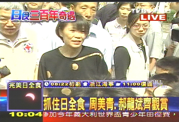 中新網(wǎng)7月22日電 據(jù)臺(tái)灣TVBS報(bào)道,本世紀(jì)最長的日全食22日上午登場,雖然臺(tái)灣地區(qū)只能看到約83%比例的日偏食,但已經(jīng)讓民眾趨之若騖。在天文館有現(xiàn)場觀測站,馬英九夫人周美青、臺(tái)北市長郝龍斌也到現(xiàn)場一起觀賞。