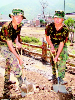 連日來,各地臺軍部隊(duì)陸續(xù)進(jìn)入桃源鄉(xiāng)救災(zāi),目前還有一百三十五名官兵留在斷水?dāng)嚯姷臑?zāi)區(qū),每天用山泉水洗澡,晚上睡在小學(xué)校園。