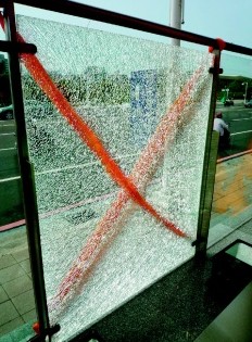 本月14日,美麗島站靠高雄郵局的出入口,有一片玻璃全片碎裂,警方和捷運公司一度懷疑是天氣太熱才熱爆了,但工程人員進一步檢視,在離地面4米的高度,發現玻璃上有疑似被撞擊點。