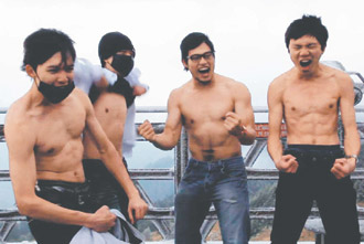 中新網12月23日電 據臺灣《聯合報》報道,來自花蓮的東華大學英語系學生游子正等4人,為了挑戰零下3度低溫,上周末到合歡山上打赤膊,由于實在太冷,個個亢奮的大叫以驅寒,表情扭曲、逗趣。