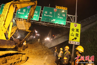 在現場參與救援的“高速公路局”北區工程處長許鉦漳表示,已經動員59部挖掘機、147輛卡車,并動員960人力,需要移除的20萬立方公尺,已經挖掘超過2萬立方公尺,以平均每小時可挖1000立方公尺,每天工作20小時計算,預計需超過1星期才可將土方完全清除,清除后還要進行復原工作。
