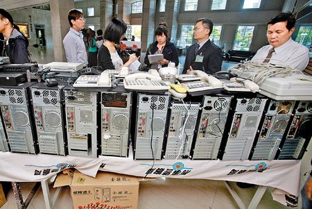 臺(tái)灣“刑事局”偵一隊(duì)、臺(tái)北縣市刑偵大隊(duì)昨天兵分十五路查緝,直搗集團(tuán)核心機(jī)房,查扣四十九臺(tái)電腦、電話機(jī)九十具、手機(jī)六十七支及現(xiàn)金十一萬,逮捕主嫌陳光著等32人。