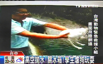 中新網(wǎng)5月1日電 據(jù)臺灣媒體報(bào)道,網(wǎng)絡(luò)上又出現(xiàn)疑似虐狗片段,有網(wǎng)友發(fā)現(xiàn),有飼主把狗關(guān)在冰箱里,還高空把狗拋到水中,虐狗影片全都放上網(wǎng)絡(luò)。動物救援小組經(jīng)過比對,發(fā)現(xiàn)飼主是苗栗大湖農(nóng)工一位女學(xué)生。不過她供稱,狗狗平常就愛玩水,當(dāng)時(shí)將它拋飛,只是開玩笑,不是故意的,但愿意向社會大眾道歉。