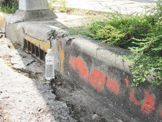 養工處人員查證發現這處凹洞是排水之用,但由于原本就有積水,使得雜草叢生,導致類似踩空而跌倒,的確是排水孔維護不當引起。