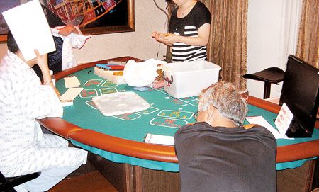 警方依情資9日凌晨突襲該汽車旅館,當場查獲假“澳門賭場房”真聚賭的百家樂賭場,房內德州撲克正賭得火熱。警清理現場后,發現16名賭客、工作人員,分別來自基隆、臺北、苗栗、臺中、云林、屏東,研判幕后有業者揪團統籌聚賭。