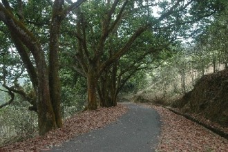 日月潭通往茶葉改良場魚池分場的貓蘭山步道,是一條賞阿薩姆紅茶、錫蘭橄欖老樹風情和湖潭風光的魅力步道,冬季還有油茶花可賞。入冬以后的錫蘭橄欖老樹,老葉陸續的轉紅掉落,滿地的錫蘭橄欖落葉可是貓蘭山步道招牌美景。