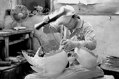 蔡錦旺告訴記者,他曾經去過大陸多次,發現大陸人才濟濟,而且用工相對便宜。現在,三義有很大一部分的木雕是從大陸進口,需要什么樣的作品一張照片傳真過去,當地的師傅就能做出八九成。所以拼產量,三義沒有優勢。他希望,能夠通過不間斷的培養、提高,在原創性、藝術性上下工夫,讓三義出現更多朱銘這樣的大家,兩岸在設計和批量生產上進行合作,才是三義木雕以后發展的方向。(記者 陳夢婕)