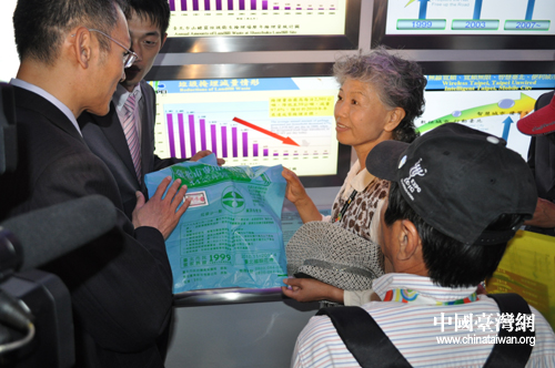 田外美代在一樓互動體驗區(qū)參觀時,對臺北參展的兩個案例特別感興趣,館長陳慶安特別向她介紹臺北市專用垃圾袋。她表示要將垃圾袋帶回東京,交給東京市政府參考,因為臺北的環(huán)保政策“做得比日本還要好!”陳慶安也特別代表臺北市長郝龍斌邀請她11月到臺北參加花卉博覽會,并贈送她花博一日券,田外美代一口答應(yīng),花博開展后,她要到臺北當(dāng)“花博奶奶”。