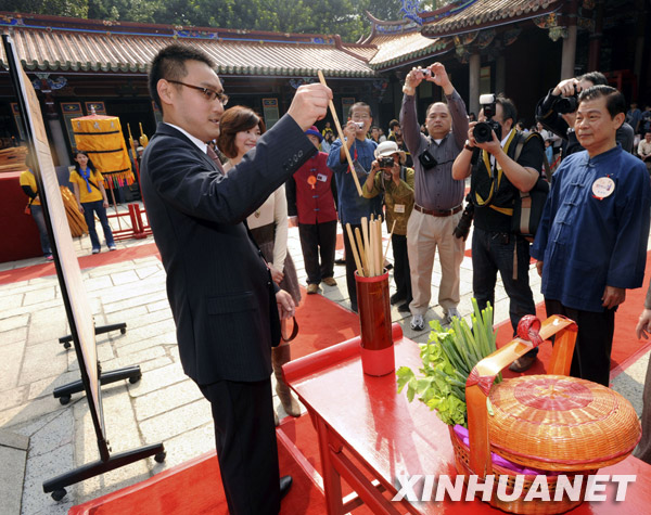 在近日于臺北孔廟舉行的春季祭孔典禮上,孔子第75代孫孔祥祺向記者講述了臺灣孔子后裔的尋根故事。
