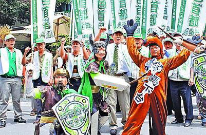 臺南市有300多名臺聯(lián)黨支持者欲北上嗆馬,卻因租不到游覽車,臺聯(lián)市議員參選人丘傭哲竟異想天開,昨與30名支持者分乘4艘舢舨,從曾文溪口闖關(guān)出海,打算循水路往北駛向淡水河。丘傭哲等人登船后,駛離不到100公尺,隨即被海巡人員攔下。(●環(huán)球時報報駐臺北特約記者 蕭師言 ●本報記者 吳 薇)