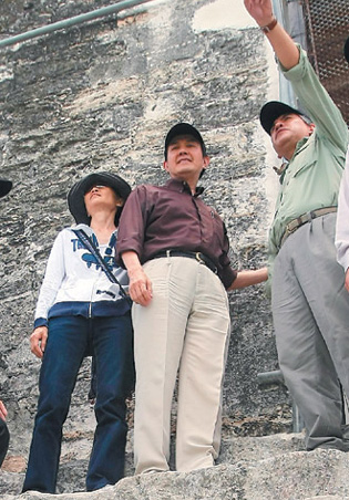 中新網6月1日電 據臺灣《聯合報》報道,馬英九訪問中美洲已經六天。馬英九夫婦被安排參觀危地馬拉提卡爾公園的馬雅遺址,輕松爬上數百階的神廟,當團員問馬英九“累不累?”沒想到一旁的“酷酷嫂”周美青插話說“他什么都沒做,怎么會累!”