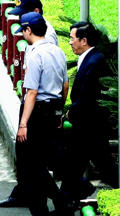臺北地方法院23日上午提訊在押的陳水扁。圖片來源:臺灣《聯合晚報》