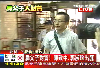 陳致中昨天出庭時,對審判長蔡守訓的訊問有問必答,但神情略顯緊張。連蔡守訓都看出來,還問他是不是很緊張。