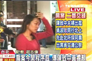 中新網(wǎng)10月30日電 據(jù)臺灣TVBS報(bào)道,臺灣高等法院審理扁家弊案,今天(30日)首度傳喚陳致中和黃睿靚出庭,對于媒體詢問只回答“謝謝”兩字,就快步進(jìn)入法庭。