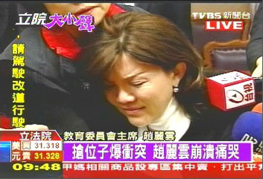 而上個星期才因為沖突昏倒送醫的“主席”趙麗云,26日再度看到這樣混亂場面,一度痛哭。“教育委員會主席”趙麗云:“我們要開會,我們要按規則開會,請所有的不管那個黨派的,要對得起人民,我們是拿薪水來開會,不是來打架的!