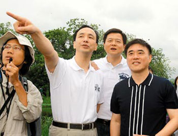 中新網(wǎng)5月31日電 據(jù)臺灣《聯(lián)合報(bào)》報(bào)道,臺北縣長周錫瑋30日邀臺北市長郝龍斌、新北市長參選人朱立倫訪視臺北縣浮洲濕地,為年底選舉造勢,互勉要把淡水河整治得更干凈。郝龍斌對三人合作形成“郝錫立(好犀利)”表示,“第一次聽到,不錯(cuò)呀!”,周錫瑋不忘補(bǔ)充廣東話叫“猴塞擂呀!”