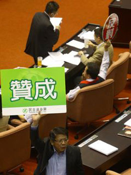 據報道,民進黨團不滿國民黨團日前強行處理采認“大陸學歷法案”,關閉協商大門,原本預定在最后一次院會處理的“災害防救法”及“公務人員退休三法”修法、“農村再生條例”立法等重大法案,協商均告破裂。