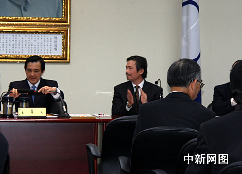 就職儀式舉行前,金溥聰先拜訪了國民黨副主席詹春柏,會前在詹春柏帶領(lǐng)下,一一和與會中常委握手。