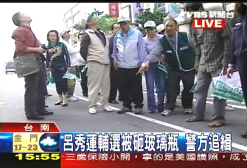呂秀蓮在臺南沿街拉票險被玻璃瓶砸中(組圖)