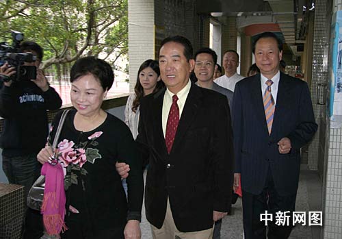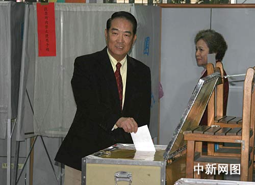 二00八臺灣地區(qū)領(lǐng)導人選舉投票二十二日上午八點開始,親民黨主席宋楚瑜攜夫人陳萬水一同前往前往投票所投票。曾嘉 攝