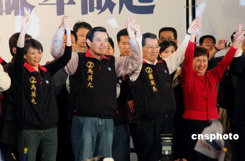 中新社臺北三月二十二日電 (記者 黃少華 曾嘉)第十二任臺灣地區(qū)領(lǐng)導(dǎo)人選舉今天舉行。投票結(jié)果:中國國民黨候選人馬英九、蕭萬長獲得七百六十五萬八千七百二十四票,得票率百分之五十八點(diǎn)四五;民進(jìn)黨的謝長廷、蘇貞昌得到五百四十四萬五千二百三十九票。