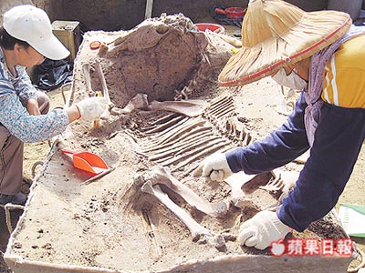 考古隊成員指出,今年春節(jié)后,隊員在緊鄰致遠管理學院南側(cè)鳳池考古區(qū)內(nèi)工作時,第一次在地表一公尺下挖出一完整的馬匹遺骸,“猶如刻意保留下來一般。”隊員表示,過去經(jīng)常發(fā)現(xiàn)狗、豬、牛的遺骸,但都不完整。