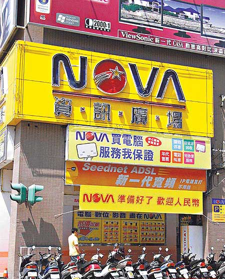 報載全臺連鎖的3C賣場NOVA 貼出歡迎人民幣的廣告,另一家咖啡連鎖墊真鍋咖啡也在價目表上列入人民幣計價項目。