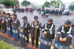 陳水扁被收押進土城看守所后,警方為防意外發生,在看守所部署大批警力,只要抗議團體出現就進行維安。