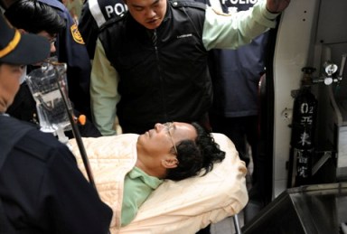 陳水扁禁食五天,16日晚間被戒護送往醫院治療,17日早上在警力戒護下轉院繼續治療。(“中央社”圖)