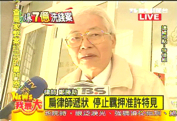 中新網(wǎng)11月27日電 據(jù)臺灣TVBS報道,陳水扁被關押在臺北看守所已經(jīng)第16天,27日下午陳水扁委任律師鄭勝助來到臺灣特偵組遞申請狀,希望特偵組能夠網(wǎng)開一面,并依循嘉義縣長陳明文模式,讓陳水扁能夠特見他的家人。