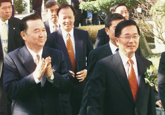 葉盛茂(左)一路獲陳水扁拔擢,圖為六年前葉盛茂陪同陳水扁(右)出席“調查局”調查班結業典禮情形。圖片來源:臺灣《聯合報》
