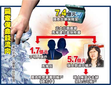 中新網1月7日電 據臺灣媒體報道,臺檢方特偵組追查扁家不法資金,查出原本藏在國泰世華銀行保險室的7.4億元(新臺幣,下同)現金中,約5.7億元匯往人頭戶后,已轉匯進陳致中、黃睿靚夫婦在瑞士設立的紙上公司賬戶,這也是扁家超過20億元犯罪所得中,唯一漂白成功的贓款。由于這筆錢仍被陳致中夫婦掌控,恐淪為扁家成員最后保命錢。