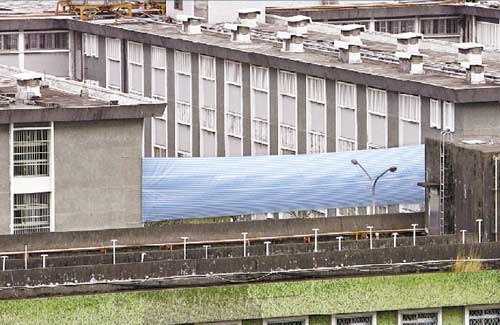 中午時(shí),看守所突然在扁放風(fēng)的球場(chǎng)邊,拉起一大塊帆布,避免讓扁再被媒體拍到。對(duì)此,看守所副所長(zhǎng)李大竹受訪時(shí)表示,這是基于維安的考慮,并評(píng)估其它放風(fēng)處是否也要比照辦理。