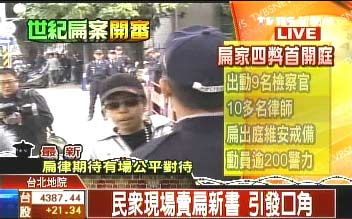 中新網(wǎng)1月19日電 據(jù)臺(tái)灣TVBS報(bào)道,19日上午9點(diǎn)半,針對(duì)龍?zhí)逗湍细鄱蟊装高M(jìn)行準(zhǔn)備程序庭,6名檢方激戰(zhàn)3位律師。一開庭扁律師提出三策略,卻全遭法官蔡守訓(xùn)當(dāng)庭駁回,后來檢察官當(dāng)庭追加罪嫌,引發(fā)律師不滿,現(xiàn)場(chǎng)爆發(fā)雙方口角。