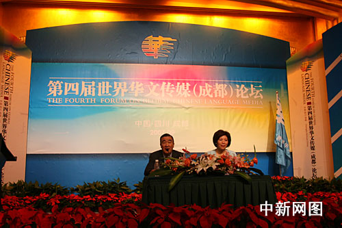 9月4日上午8時30分,第四屆世界華文傳媒論壇大會舉行“部長論壇”。中國奧委會主席、北京奧組委主席助理屠銘德先生;北京市新聞辦主任、北京市奧組委新聞宣傳部常務(wù)副部長王惠女士正在為大家講述奧運。中新社 郭晉嘉 攝。