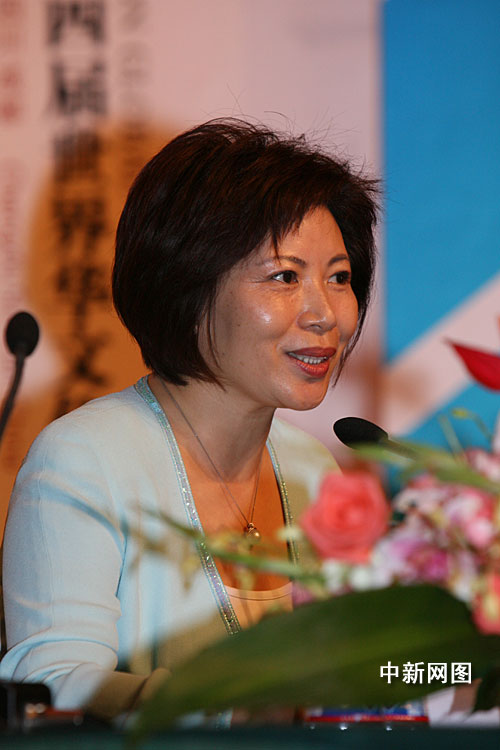 9月4日上午8時(shí)30分,第四屆世界華文傳媒論壇大會(huì)舉行“部長(zhǎng)論壇”。圖為北京市新聞辦主任、北京市奧組委新聞宣傳部常務(wù)副部長(zhǎng)王惠女士為大家講述奧運(yùn)。中新社 張勤 攝。