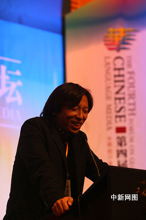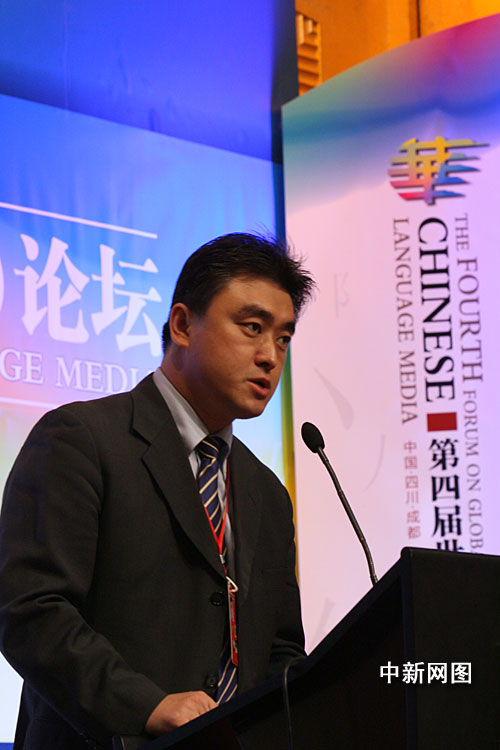 因為之前沒有準備,15分鐘前主辦方才通知我。這次論壇雖然是我第四次參加,但是沒有準備內容。所以在我的演講里面,我的邏輯出現不清楚的時候請大家原諒。我選擇了一個題目,跟剛才張朝陽先生談到的一部分是比較接近的。就是“網絡時代主流媒體應該負起的社會責任”。我為什么選擇這樣的題目呢?是基于昨天晚上美國《僑報》開通的時候,美國《僑報》電子報、美國僑報網以及在籌備開通儀式的時候,對于新聞線上的思考和反思。大家知道現在這個時代已經競爭到一個數字化、信息化的時代。平面媒體已經在開始向電子媒體轉型、延伸、發展,這種新的科技手段為我們媒體人提供了一幅前所未有的畫卷。我們現在的媒體人面臨的是無邊的傳播范圍,過去我在《僑報》,洛杉磯的紙面報紙,現在在網上可以沒有國界。這是一點。