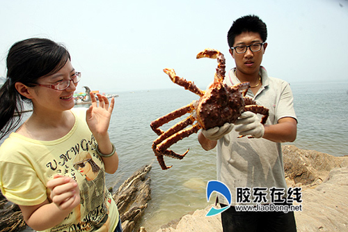 “一只螃蟹6斤重,展開之后一米長,和章魚哥一樣,擅長預測……。”負責看養帝王蟹的煙臺市民小魏這樣告訴記者。7月13日,本網以《好大一只帝王蟹 重3公斤價值1700元》為題報道了市民矯先生從俄羅斯購進的大螃蟹,一時間吸引了眾多看稀奇的游客和市民。相隔不到一個星期,其中一只名叫“霸王”的超大螃蟹爆出猛料,因為它要向世界杯明星保羅章魚哥發出挑戰,預測所有魯能比賽。