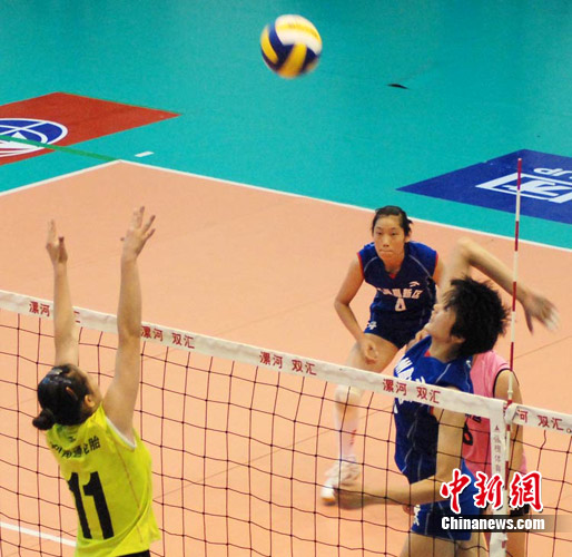 中新網漯河8月1日電 (記者 師紅壘 通訊員 林波)7月31日上午,2010年全國女排錦標賽(雙匯賽區)在漯河市體育中心體育館進行了交叉賽的4場較量,東道主河南隊0:3不敵缺席多名國手的全國女排聯賽七冠王天津隊,江蘇3:0戰勝遼寧,山東3:1擊敗云南,廣東0:3負于河北。四場比賽的具體比分是:天津-河南(25:16、25:16、25:11);江蘇-遼寧(25:21、27:25、25:18);山東-云南(25:21、20:25、25:19、25:21);廣東-河北(8:25、23:25、12:25)。