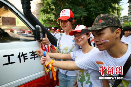 “志愿彩”車系上V風彩帶準備出發。楊薇 攝
