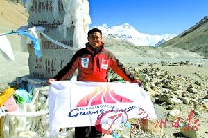 從廣州到溫哥華再到珠穆朗瑪峰,8個(gè)月的時(shí)間,上萬(wàn)公里的路程,這幅肩負(fù)著廣州亞運(yùn)會(huì)宣傳任務(wù)的旗幟終于飄揚(yáng)在珠峰上。