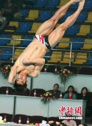 中新網(wǎng)重慶10月16日電 (孟幻)16日,在全國(guó)跳水錦標(biāo)賽男子三米板的決賽中,奧運(yùn)會(huì)和世錦賽雙料冠軍何沖一路領(lǐng)先,力壓陜西名將秦凱,摘得桂冠。海軍選手張新華位列第三。