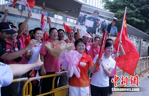 和黃利榮一樣處于興奮之中的羅湖邊檢站的同事們,早在兩天前就前去傳遞路線(xiàn)踩點(diǎn)。18日當(dāng)天幾十名民警自發(fā)前往市民中心,拉著橫幅、高舉國(guó)旗,在火炬?zhèn)鬟f沿線(xiàn)為黃利榮吶喊助威。黃利榮表示,平安亞運(yùn)任重道遠(yuǎn),她將以火炬?zhèn)鬟f為動(dòng)力,和她的同事們一起,在邊檢崗位上竭誠(chéng)為出入境旅客服務(wù),為實(shí)現(xiàn)‘平安亞運(yùn)’的目標(biāo)不懈努力,做傳播亞運(yùn)精神的文明使者。完