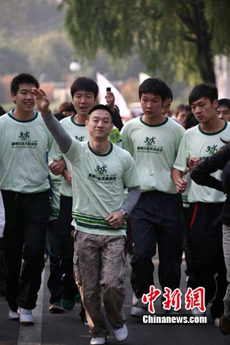 中新網武漢11月6日電 (王一笑 張丹丹 徐金波)由北京奧運會體操全能冠軍楊威領銜,武漢市1.5萬人在漢口江灘舉行健康跑。