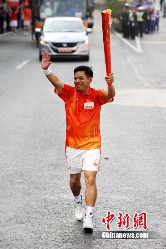 9日上午10時38分,在廣州市解放北路,伴隨群眾的歡呼和掌聲,亞運會第22棒火炬手何錦坤順利完成亞運火炬?zhèn)鬟f,他激動地說:“在‘119消防日’傳遞火炬,對我而言更具紀念意義,終生難忘。”
