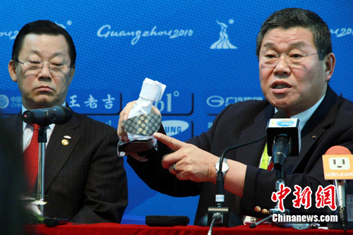 在發布會上,梁振錫特意展示了兩塊黑色的感應器以及腳部的模型,并解釋說,每個參賽隊員都要放置感應器,正確的是應該放在襪子即腳背上的位置,而楊淑君的感應器卻放在了腳后跟的位置,這樣“容易得分,對其他隊員明顯是不公平的”。